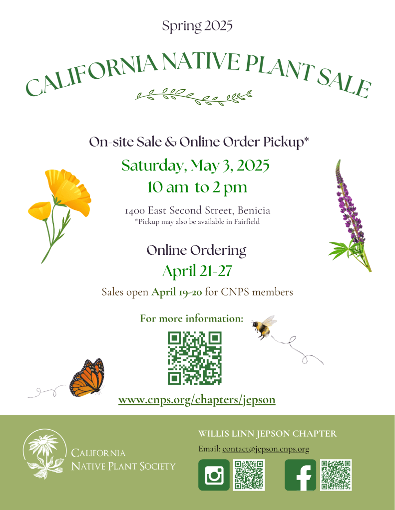 I’ve got another busy week ahead of me because it’s time for the nursery’s native plant sale! If you’re in the Vallejo or Benicia, CA area, come on by!